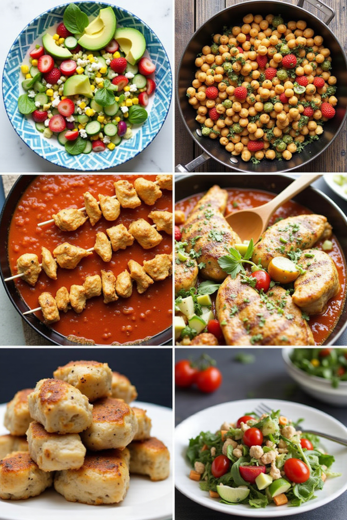 You’ll want a blend of make-ahead meals and simple, quick-cook recipes. Dishes like overnight oats, batch-cooked grain bowls, and rotisserie chicken with roasted vegetables keep meal prep efficient and stress-free. Swapping conventional oils for olive oil, using wild-caught salmon or sardines, and boosting every plate with fresh herbs and leafy greens further maximize anti-inflammatory benefits.